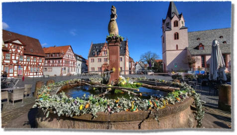der geschmückte Marktbrunnen oder Bietbrunnen Groß-Umstadt…